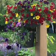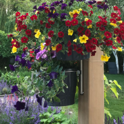 De potplanten zijn met een zorg samengesteld en zijn een mix van oa. petunia’s, Lobelia’s, geraniums en Bacopa’s. Elke situatie is uniek en elke ruimte is qua kleur anders. Bedenk goed wat er bij u past om zo uw groene kleurrijke gevel naar wens in te vullen.